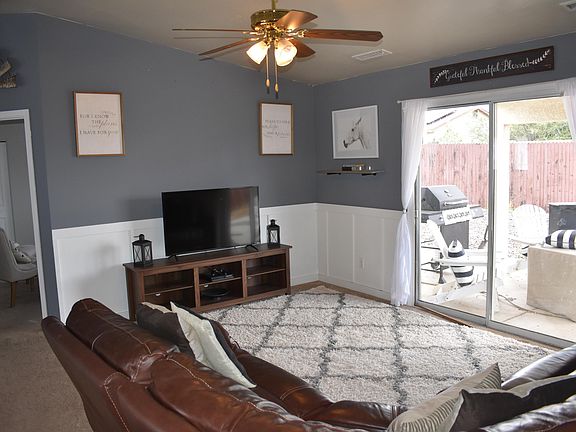 Well cared for home in the heart of Prescott Valley. Split floor plan 3 bedroom, 2 bath. Open vaulted ceilings in living room with private exit to covered patio, wood fenced rear yard with ample space and shed. Freshly painted. Tiled entry, laundry, bathrooms and kitchen. Carpet in living and bedrooms. Kitchen with vaulted ceilings giving you an open feel with breakfast bar, eat in kitchen with bayed windows. Master bedroom with his & hers closets and linen closet in suite with bathroom offering walk in shower for easy access. Hall bathroom has tub/shower combo. Ceiling fans t/o. Central A/C. 2 car garage has opener with side access to rear yard. Also, rock ''U'' drive for extra parking. Gates on both sides of yard. Great home - a must see!! Owner/Agent