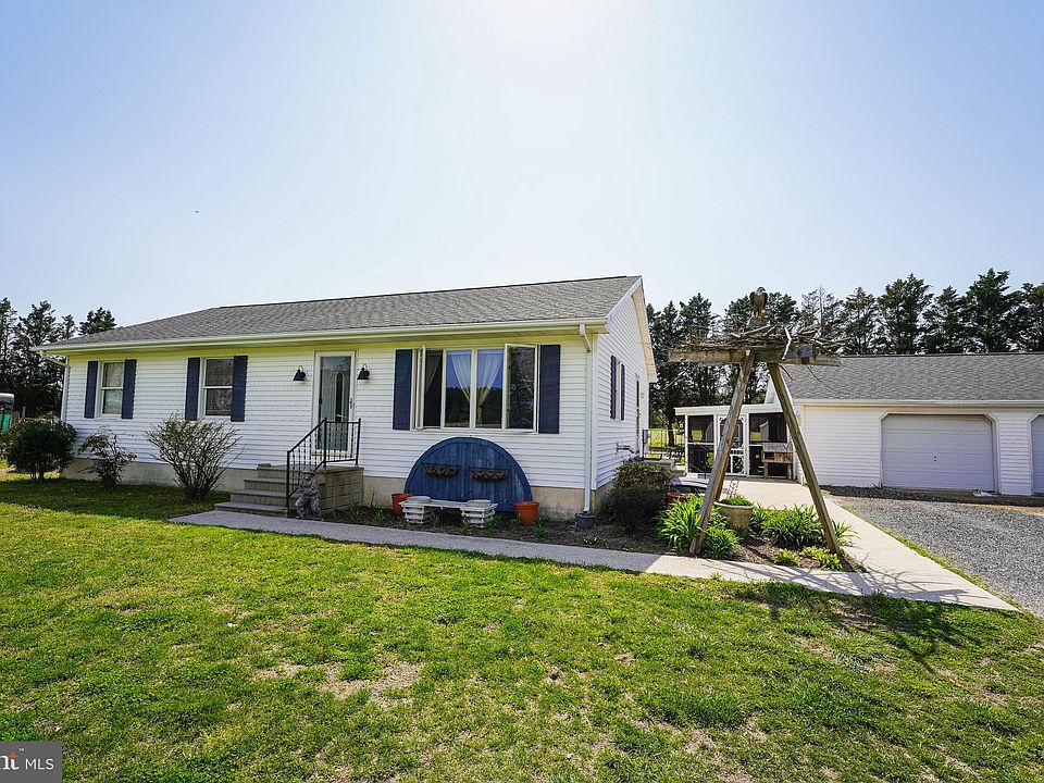 Don't miss this! 3BR/2.5BA rancher on a nice sized lot - detached, oversized 2-car garage w/a brick-floored, screened-in porch. Warm and welcoming living room w/pellet stove. Eat-in kitchen with granite counters, ample cabinetry and dining area. Owner's bedroom w/custom built-ins and barn doors, full, en-suite bathroom. 2 additional bedrooms, one with an en-suite half bath. 2nd full bathroom. Large laundry room with built in cabinetry and granite counters. Outside, a concrete patio connects you to your screened-in porch. Room to roam in your new country home - just minutes to Rt 50, shopping, dining and entertainment! Sizes, taxes approximate.