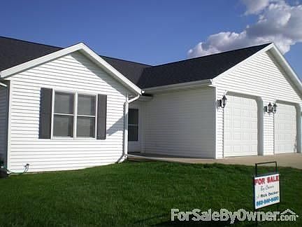 Quality custom built duplex condo in Maquoketa, Iowa. Built in 2009-new neighborhood and offered at a great price! Stepless entry at front door and also from garage into main floor laundry room. Beautiful oak cabinetry and trim throughout. Kitchen includes all new appliances and opens into large living area. Sliding doors from dining area onto a deck overlooking an open field-no neighbors behind you. Two bedrooms and bath on main floor with ample closet space. Large third bedroom in lower level with full bath and large family room with beautiful daylight windows. Upgraded carpet throughout upper and lower level. Over 2000 sq ft of finished living space-must see to appreciate. Also have available similar condo with double car garage and four bedrooms at $155,500. No association fees. Buyers market-these condos are priced below builder's cost. Additional property info: http://www.forsalebyowner.com/listing/9S9MH?provider_id=28079