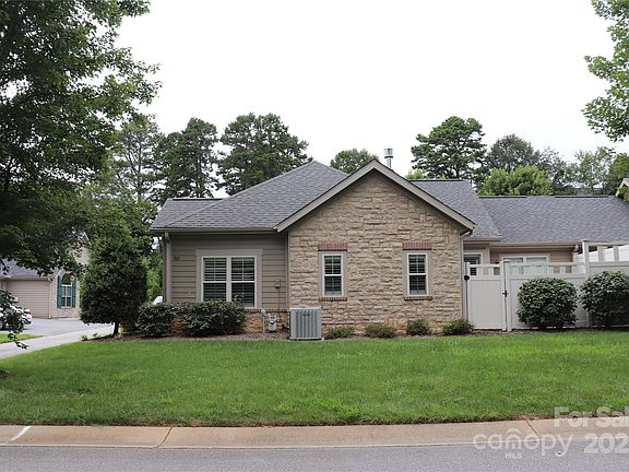 Welcome to Wynnshire Ridge in Hickory NC, a city that has been ranked No. 3 Best Places to Live in NC and No. 25 in the United States. This delightful one-level townhome is situated on a tranquil tree-lined street featuring 2 bedrooms, 2 bathrooms, an office, large double garage with room for storage, and an enclosed patio for entertaining, relaxation or an outdoor area for your pet (one of the few homes in the community with this feature). The home boasts a beautiful mix of stone, brick and hardboard siding. The open concept living and kitchen feature a cathedral ceiling, natural gas log fireplace, lots of natural light, access to the office with double french doors, and windows adorned with sleek 3.5" louvered plantation shutters. Lovely kitchen with granite counter tops, eat-at island, pantry, lots of cabinet space and a dining area with built-in cabinets. Kitchen appliances were replaced approximately 5 years ago and include stainless steel refrigerator, electric range, built-in microwave and dishwasher. The primary suite features a cathedral ceiling, windows facing the private patio, a spacious walk-in closet, and an ensuite with counter height dual vanity and walk-in shower. The home has a split floor plan with a second bedroom and hall bath with tub/shower combination. Large laundry room with utility sink and storage area. The heat, gas logs and Rinnai tankless water heater are sourced by natural gas. The Heating/AC are serviced twice a year. Club House amenities include a spacious indoor area with fireplace, seating area, full kitchen, pool table, fitness room, an outdoor heated pool, grilling and fireplace, a community walking trail and social events. Don't miss the opportunity to make this YOUR HOME and start enjoying the Wynnshire Ridge lifestyle.