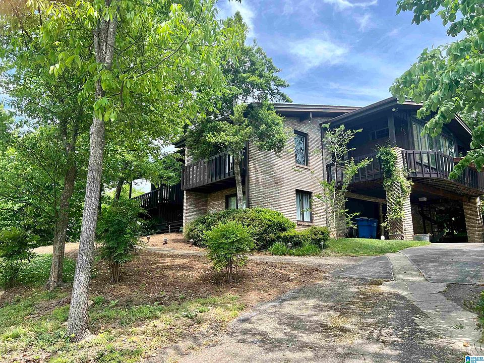 Enjoy 2.5 acres of privacy in the heart of Jacksonville. This secluded 3 bedroom 3.5 bath home has lots to offer and is located close to JSU, shopping and local restaurants. The home boasts vaulted ceilings in the great room, kitchen and master suite with exposed wooden beams. The great room has a floor to ceiling, wood burning, rock fireplace that splits walkout sliding glass doors. The kitchen has been updated with granite counter tops and tiled back splash, travertine tile floors. The master bedroom has it's own private sitting area. An envious master bath features a double shower with intricate tile work, separate his & her vanities, a walk-in closet and a solid wall of windows for lots of natural light. Bedrooms 2 and 3 have full baths. The downstairs den has been finished with travertine tile floors and features another wood burning fireplace and has walls of windows. Carriage house with loft and 3 garage doors for tall vans and power for the workshop/garage.
