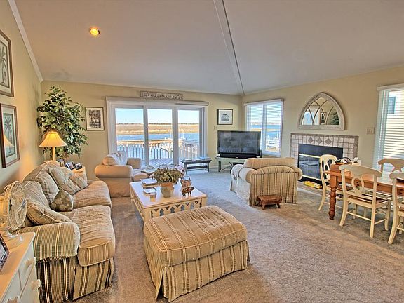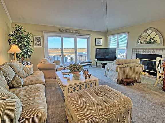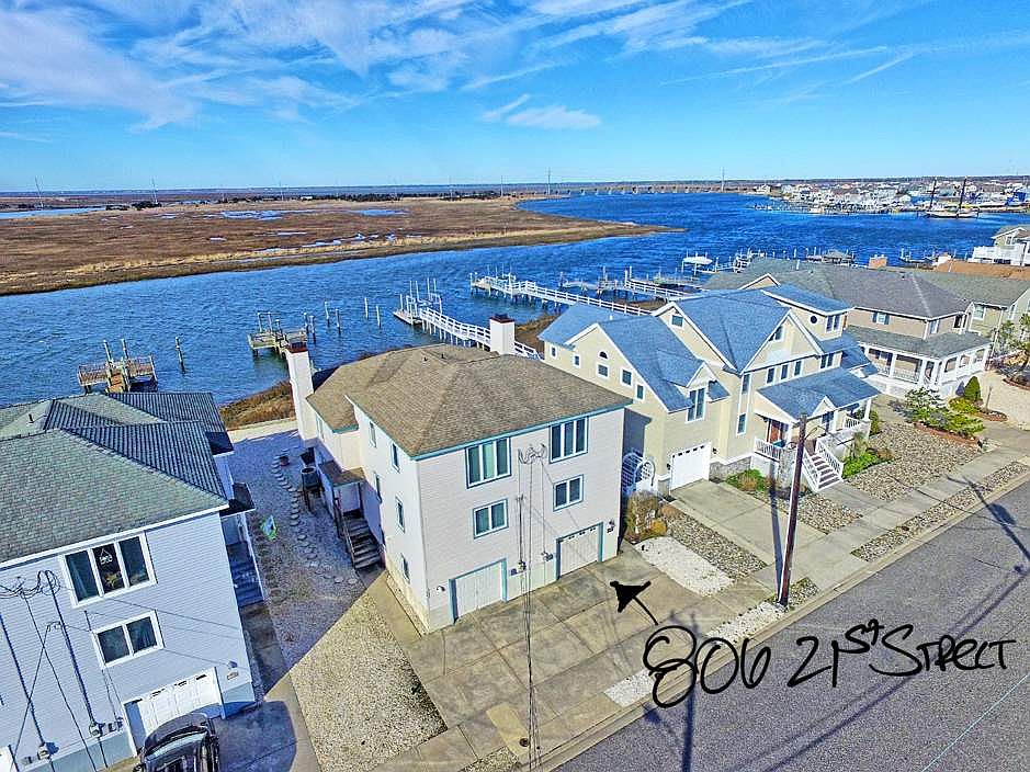 Easy access to fast water, an expansive great room, and an unrivaled sunset view make this unique property a must see. Situated at the quiet end of 21st Street, this four bedroom and three bathroom townhome offers sensational northern, western and southern bayfront views. The home has been lovingly maintained and is in great condition. An updated kitchen with new cabinets, countertops, appliances and backsplash serves as the backdrop for an extra wide entertaining space. The living room has wide-spanning southern and western views, offers plenty of seating for the entire family, and is centered on a wood-burning fireplace with a beautiful tile surround. Slider access to a large deck off the entertaining space is one of a few great spaces to watch the sun set. The deck is outfit with a large, retractable awning. The third floor, master bedroom is situated on the north side of the home and offers unobstructed views looking north. This great view will always be there, as the ground on the opposite side of the street is not buildable. The guest suite on the second floor is beautifully furnished and has access to a full bathroom that also doubles as the bath for the entertaining space. The first floor offers two bedrooms (one with slider access to the first floor deck), a full bathroom, and the laundry area. A fixed pier at the end of the dock is a great place to watch the sunset at the end of the day. A full garage provides extra parking or is the perfect place to hide all of your beach and bay toys. Whether you like to get out on your boat, stare at the sunset, or have easy access to the center of Avalon, this home and location is great opportunity to start creating Avalon memories.