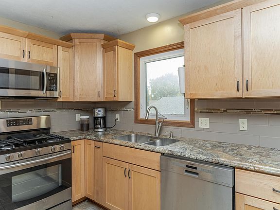 Check out the mint kitchen remodel with maple cabinets, multiple pull outs, tile flooring and backsplash & more! Great split-level home with 4 bedroom/2 baths in a great location in Stewartville. Four car garage....yes I said FOUR! Large attached 2 car garage and a large 2 car garage that could be so many possibilities!!! Make an appt to view today!