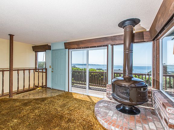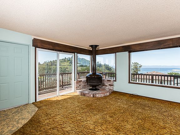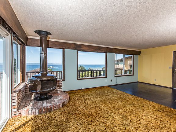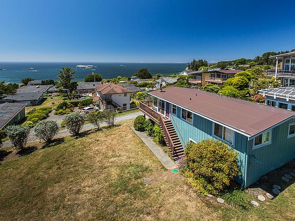 THE BIG FOUR, ocean, beach, bay, and Trinidad Head views from a prime central village location. Stunning coastal views from most rooms in 3 bedroom,2 bath vintage home approx. 1450 s/f featuring unique woodstove, open kitchen and living room combo, great natural light, two room basement area partially finished, double attached garage and wrap around deck. Large parcel with full sun and southern exposure for wonderful sunrises and sunsets.