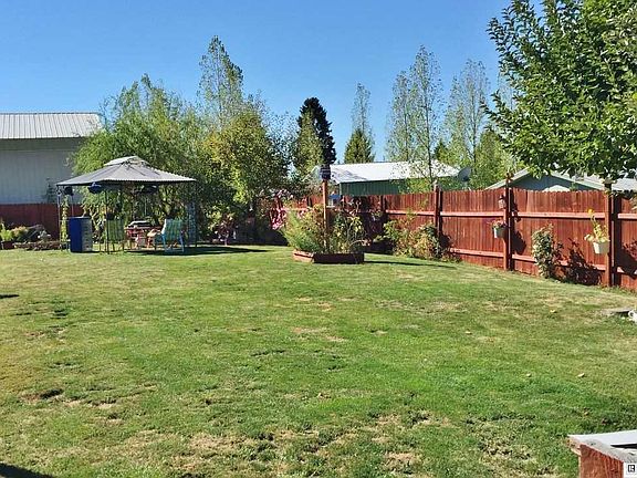 Quiet location at edge of town! Large fenced lot with fire pit, garden area and 2 storage sheds. Nice 3 bedroom, 2 bathroom manufactured home with updated windows, wood laminate flooring, newer tubs & toilets & wood stove. Affordably priced! Call today!