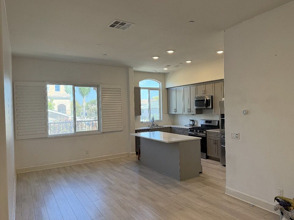 Welcome to 806 Ada St, a beautifully maintained 4-bedroom, 3-bathroom end-unit townhome located in the desirable gated community of Bahia Vista II in Chula Vista. Built in 2019, this spacious home offers 1,788 square feet of thoughtfully designed living space filled with natural light and modern touches. The open-concept layout features high ceilings and a gourmet kitchen complete with stainless steel appliances, quartz countertops, a breakfast bar, self-closing shaker cabinets, and a large pantry perfect for both everyday living and entertaining. One bedroom and a full bathroom are conveniently located on the first floor, ideal for guests or a home office setup. Upstairs, the primary suite includes a walk-in closet and a stylish en-suite bathroom. Additional highlights include in-unit laundry, central air conditioning, and an attached two-car garage with direct access. Residents of Bahia Vista II enjoy a secure, gated environment with well-maintained landscaping and a community playground. This home offers easy access to the harbor, shopping, dining, and major freeways, making it the perfect blend of comfort, style, and convenience.