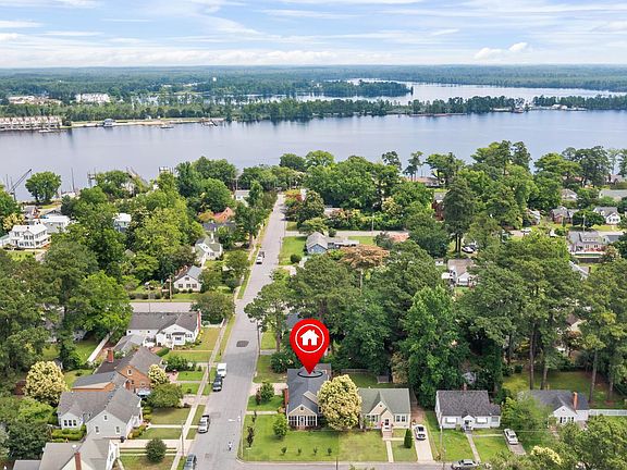 Just 3 Blocks from the Pasquotank River! This updated riverside home is full of charm and ready for you to move right in. Inside, you'll find beautiful wood floors throughout and a cozy living room with a fireplace and a sweet little reading nook. Step out to the screened-in porch—perfect for relaxing or enjoying dinner outdoors most of the year. The kitchen has everything you need, including granite countertops and a full set of stainless steel appliances—great for hosting friends or cooking up your favorites. There are two bedrooms and a full bath on the main floor, plus a spacious primary suite upstairs with its own bathroom and a private office space—ideal if you work from home or if you just want a quiet retreat. You'll also love the attached garage with easy access to the kitchen, and the public boat ramp just minutes away for weekend fun on the water. Don't miss the shed, perfect for your gardening tools and lawnmower!