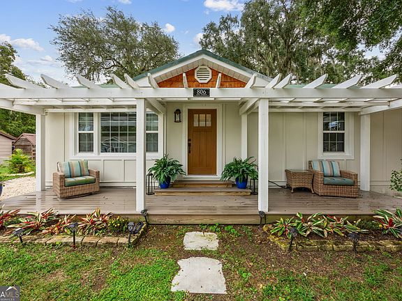 Beautifully renovated and golf cart accessible, this home blends modern updates with classic charm. The remodeled kitchen features custom cabinets, granite countertops, high-end appliances, and a large island. Bathrooms are fully restored with new plumbing, tile, and vanities, while the laundry room includes a brand-new washer and dryer (included). Enjoy outdoor living in the screened pavilion kitchen with granite counters, ceiling fans, running water, and a dishwasher, perfect for entertaining friends on game day! Additional highlights include a two-car garage, double-wide carport, air-conditioned workshop/man cave, refinished hardwood floors, new Hardie board siding, metal roofing, energy-efficient doors, and professional exterior lighting. Last but least this home includes adjacent lot with a combined .50 acre of landscaped grounds make this move-in-ready home perfect for entertaining and everyday living. Come see all that Downtown St. Marys has to offer!