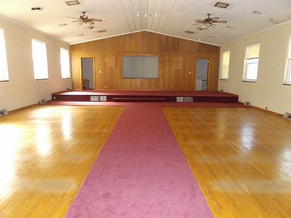Charming Church by the creek. Formally Lucas Memorial Christian Church. Easy access to RT 460. Main level features huge sanctuary w/hardwood & carpet flooring, extra room w/carpeting, half bath, vaulted ceiling and baptismal pool. Huge heated basement features partially finished rooms and two half baths. Two heat pumps. Brick/Vinyl exterior. On site parking. Brick Bell tower w/bell & storage underneath. Public water. Private septic. Directions: From Blacksburg. RT 460W. Turn R on Apache Rd. See sign.