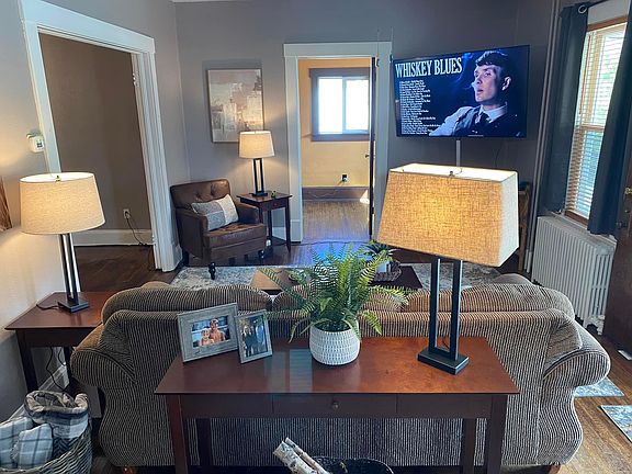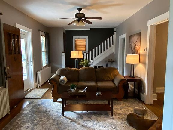This charming home offers off-street parking and modern amenities throughout. With separate heat pumps for both the upstairs and downstairs, you can enjoy customized climate control year-round. Additional heating options include gas heat and a gas stove for efficient warmth and cooking. The home is also equipped with a washer and dryer for added convenience. Each of the three bedrooms features ample closet space, including a spacious walk-in closet in the hallway for extra storage. The upstairs bathroom boasts heated flooring, adding a touch of luxury. The home showcases beautiful hardwood floors throughout the living areas, complemented by tile flooring in the kitchen, bathrooms, and laundry room. A versatile side room provides the perfect space for an office, playroom, or whatever suits your needs. This home combines style, comfort, and practicality in a great location! 1 year lease agreement. No smoking allowed. No pets allowed. Renter pays for gas, water, electric, sewage & trash. Must maintain lawn.