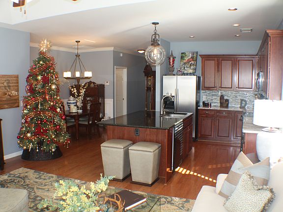 Move-in ready Single level Open Concept home in Gated Community - Hardwood throughout - Upgraded Countertops, Light Fixtures, Custom Glass Backsplash & 42 in Maple Cabinets in Kitchen - Treyed ceilings in both Great Room & Master Bedroom - 36 in Bathroom Vanities - Welcome's Home