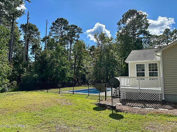 Come and see this lovely 3-bedroom, 2 bath, well maintained home, nestled in the sweet, gated community of Fairfield Harbour! This custom home boasts a fenced inground pool that all will envy! It is 5ft in depth, surrounded by concrete, with the large back deck overlooking the pool. It's here where Spring & Summer grilling begs to happen! Back out front, enter this home by passing freshly laid mulch in the gardens, that await your favorite plants & flowers. The covered front porch with columns is long and wide enough for outdoor furniture to relax on. Open the aqua blue, glass Pella door and come right into the Foyer, walk straight to the Living Room and admire the recessed lighting, a gas fireplace with mantle, shelves to the right of the fireplace, ceiling fan, crown molding, wainscotting paneling, and the transom windows to the Carolina Room. The Carolina Room has the potential of being your favorite Room, giving you the ability to enjoy Eastern NC weather all year round, bug and humidity free! Next enter the Breakfast Nook, still with plenty of natural light, and a glass door to a Screened-In Porch. Go right into the Kitchen with LG stainless steel appliances, tile backsplash, white wood cabinets, a large sky light, and black granite countertops. Down the hall from the Kitchen is your Laundry Room with an entry to the FROG and Garage. In this split floor plan the Master Bedroom off the hall is spacious, has a private door to the Back Deck, an en suite Bath that boasts a large vanity sink, a jetted tub, walk-in shower, and walk-in closet. Head back through the Laundry Room, up the stairs into the carpeted FROG. Fourth bedroom perhaps? In the FROG there is multiple entrances for storage in attic space. Back to the Living Room and enter the small French doors to the hall where you find two adequately sized light, airy bedrooms, and a full bathroom. Must see to appreciate the attention to detail in this home. Truly one of a kind! Ask about the upgrades!