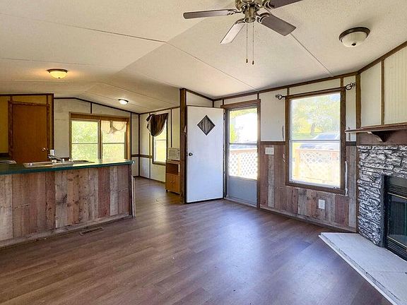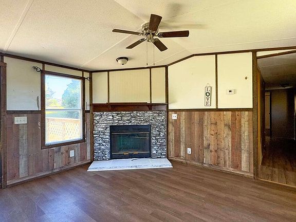 Welcome to this 2BR/1BA home on 1.65 acres in a peaceful cul-de-sac! This cozy mobile home offers a perfect blend of comfort and potential, nestled on 1.65 acres in a serene cul-de-sac. While it may need a little TLC, it boasts essential updates including a brand new roof and a new HVAC system, ensuring peace of mind for years to come. Step inside to discover an open concept living area. The living room features a fireplace, perfect for cozy evenings at home. The expansive backyard offers ample space for outdoor activities, complete with an outbuilding for additional storage and a carport for your convenience. Enjoy picturesque views from your backyard, making it a perfect spot for morning coffee or evening gatherings. With its generous lot size and desirable features, this mobile home is not only a great place to live but also a fantastic rental opportunity. Schedule a showing today and envision the possibilities!