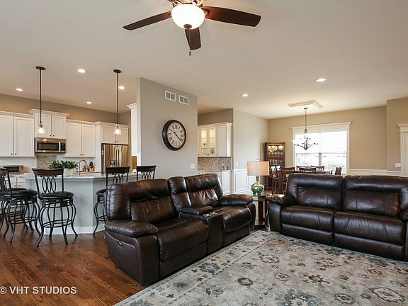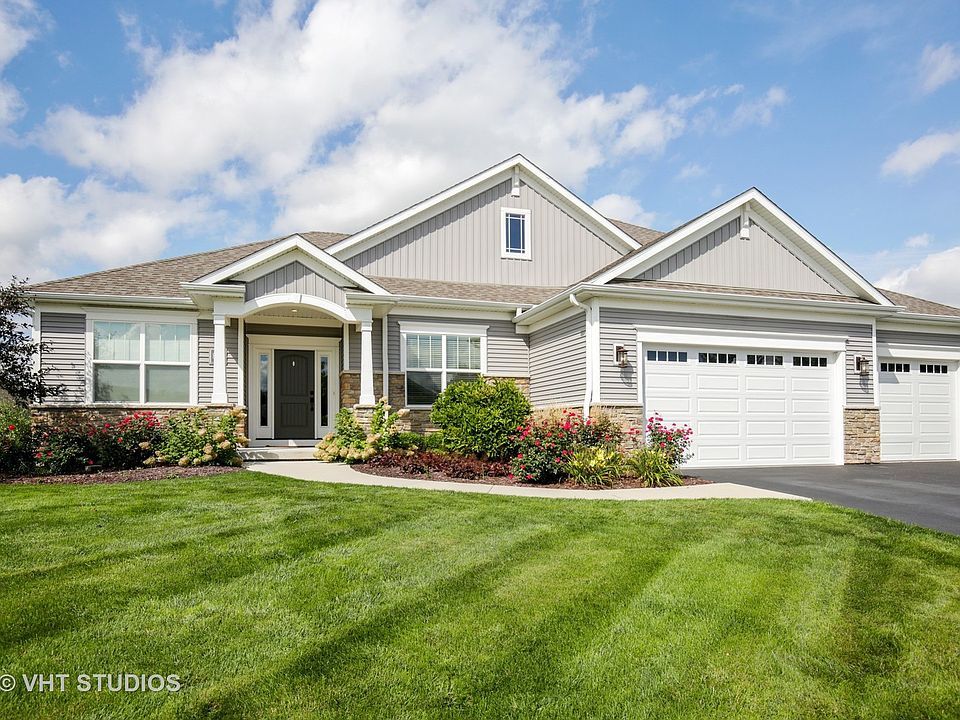 GORGEOUS Embassy builder former model with highly sought after open concept IMMACULATE ranch! "2020 BEST HIGH SCHOOLS" by U.S. News and World Report. GOURMET Kitchen w/stainless steel BOSCH appliances, granite counter-tops w/granite sink, 42" custom white cabinets, butler's pantry and 5' food pantry. Family room w/stone faced gas fireplace w/wood mantle, custom oak staircase leads to full unfinished English basement w/full bath rough in and 8'10" ceilings. Formal Dining room features wainscoting. Master suite w/tray ceiling, huge walk in closet, and luxurious bath. PELLA windows and patio door w/transoms. 3/4" Solid Oak Hardwood floors, 10' and 9' ceilings & elegant white trim & crown molding welcome you home! 3+ Car fully finished HEATED garage! Professionally landscaped yard with in-ground sprinkler system, maintenance-free fenced backyard. Shows like a model home!