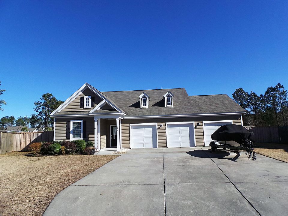 THREE CAR GARAGE! Park your boat/RV in your long driveway! This split bedroom plan has an open living area, 9ft smooth ceilings, wood floors, island kitchen, stainless steel appliances, and pond view. Master has his and hers walk -n closets and nice tile shower. Home sits on a big lot and has a pond view.