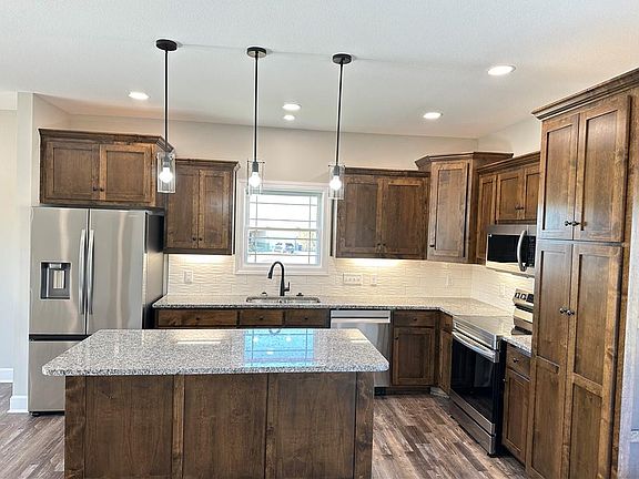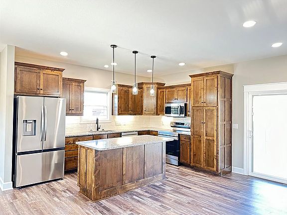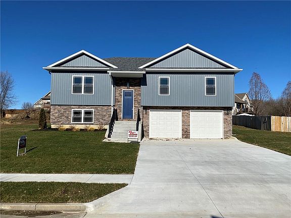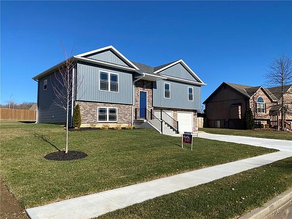 Wonderful Home being built in Knob Noster, MO by a long time Home Builder. A Split level home with 4 bedrooms, 3 full baths, 2 car garage on nice size lot. From the outside of home to inside is a work of art. Stone and vinyl siding, grand staircase that offer black metal railings leading to an 8' front door. Once inside the home offers LVP and carpet flooring. 9 foot walls on main floor and in the basement, giving this large home an even larger feeling. Home offers custom cabinets that have built in trash can holder in the island, large pantry with pull out shelving, with granite tops in the kitchen and all 3 bathrooms. Kitchen comes complete with center island, deep sink, garbage disposal, microwave, dishwasher, stove and refrigerator. Two bedrooms and master on the main floor. Master has raised ceiling with can lights and ceiling fan. Master bath offers large tiled walk in shower and shower door, 6 foot vanity with double sinks and plenty of outlets, surrounded by mirrors. Walk in closet with custom designed storage. When you walk downstairs you will find a large family room, bedroom with walk in closet, full bathroom, mud room area with custom bench and coat hooks. Door leads out to an oversized 2 car garage. The double garage doors offer side mounted openers (whisper quite). You will love these openers - don't disturb the bedrooms up above. Sodded front and side yard, large back yard that can be accessed from the wood deck and steps off dining room. Home is equipped for comfort and is ready to be enjoyed. This Builder takes pride in his work.