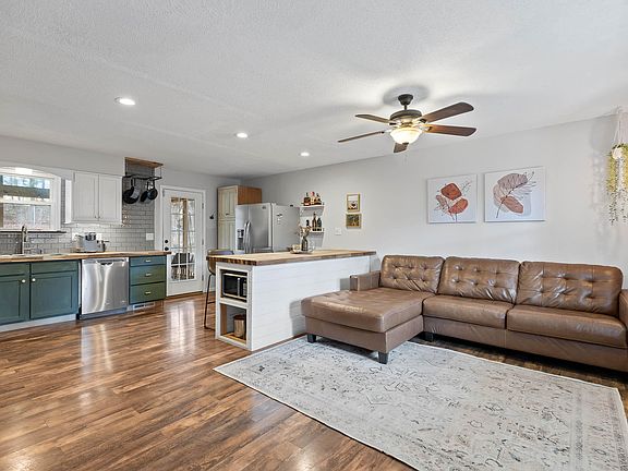 This modern rustic home is move in ready! Open concept living room and kitchen! Butcher block counter tops with island and workspace. The master bedroom has its own private half bath! Two additional bedrooms sit across from updated full bath. Second living area in the basement with gas log fireplace, laundry room, and extra storage. Outside the back door is a large, covered patio perfect for entertaining guest! Additional fenced area would work well for all pets, including chickens... Rural setting only 25 minutes from downtown!