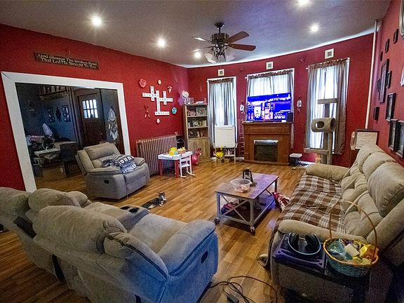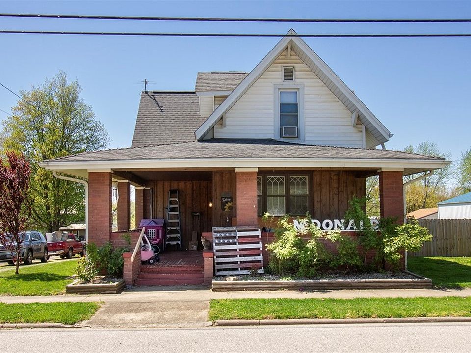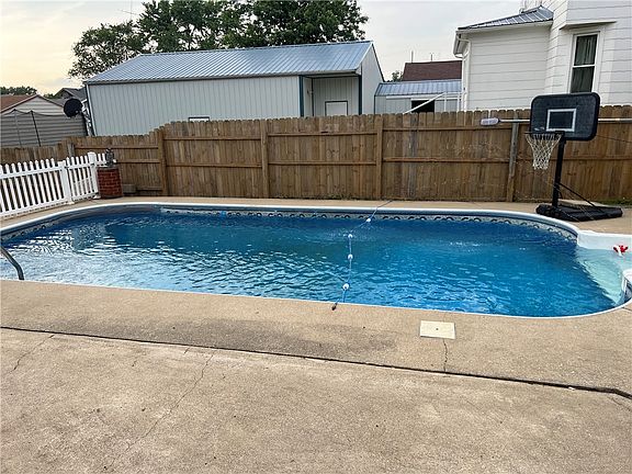 This 4 bed, 1.5 bath home on a corner lot is within walking distance of the Jr/Sr High School! You will love the large covered front porch of this home! Upon entering you are greeted with a beautiful wooden staircase in the formal entryway. The large living/dining room is complete with tall ceilings making the room feel even larger! Thru the living room you will find the large kitchen and 1/2 bath. The mud room offers main floor washer and dryer and access to the basement which houses the boiler for the hot water heat, water heater, storage area and a shower unit! Upstairs is 4 spacious bedrooms with plenty of closet space and a full bathroom featuring a garden soaker tub. Outside is a fully fenced back yard, detached garage with concrete floor and a yard barn. Don’t forget about the 28x14 inground swimming pool with 8’ deep end! $600 flooring credit. All kitchen appliances stay, washer and dryer, window units, and picnic table. Schedule your showing today before this one is gone!