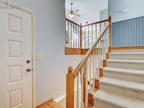 Incredible opportunity to live on a cul de sac, with no HOA, a large fenced backyard, and beautiful mountain views! Great views of the Castle Rock itself as well! The spacious backyard features a multi level wood deck with built in benches, a gazebo, utility shed, and newer fencing. 3 bedrooms -- the Primary Bedroom has a walk in closet with pine floors, while the other 2 bedrooms are generously sized. The upper level full bathroom has a clawfoot tub and shower, modern tiled wall and flooring, and upgraded vanity and light, while the 3/4 bathroom downstairs has a spacious walk in shower. Open floor plan on the upper floor has a living room with vaulted ceiling, wood burning fireplace with rock accent wall and mantel, ceiling fan and mountain views; dining room with nook/workspace/bar area; and kitchen with wainscoting, butcher block island, pantry, stainless appliances, modern farm house inspired shelving, pendant lights and crown molding. Laundry room with counters and cabinets -- washer and dryer are included! 2 car attached garage with access door to the backyard and built in shelving. Lots of natural light, lots of storage throughout the house, central AC. Cul de sac, huge pie shaped yard, mountain views. Close to Downtown Castle Rock, Rock Park, easy access to I-25. In nationally recognized Douglas County School District.