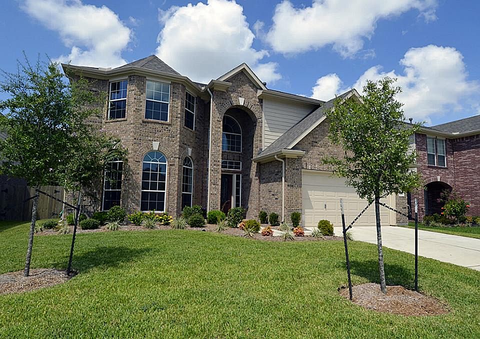 Gorgeous 5BR/3.5 bath home is waiting for you! Formal dining, family room and upstairs gameroom. No carpet on the main floor, custom tile throughout. Master retreat w/trey ceiling,spa-like bath is on the first floor, but a 2nd bedroom up also has a private bath, great 2nd master. Upgr. kit includes granite countertops, gas cooking and center island for add. prep space.No back neighbors.Covered patio.No flood ins.required No MUD tax! Come see!