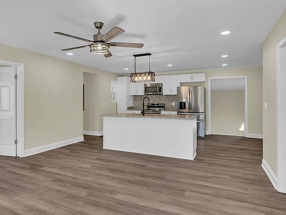 Beautiful home on a quiet street in a non-HOA family friendly subdivision, Brand New Concrete Driveway with a large lot and fully fenced in backyard. 4 year old Roof and Windows with an attached sunroom that comes off a multipurpose bonus room/den that could be used as a fourth bedroom, Office or playroom. Newwer HVAC, New exterior and interior paint with new LVP flooring throughout the home. Tiled master shower with double vanity sinks in master bath, and tile floors in both bathrooms. Walk-in closet in master, ceiling fans in all three bedrooms and recessed lighting throughout the home. Open floor plan with large kitchen island, granite countertops, stainless steel appliances and New LG WASHER AND DRYER. Laundry room with a lot of interior and exterior storage. Dust till Dawn floodlights on both front corners of the home with covered front porch.
