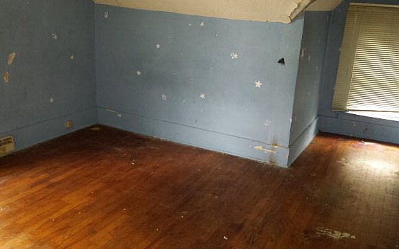 This 1 1/2 story home has an oversized living room and an enclosed front porch. Patio area off the kitchen. Bedrooms do not have closets Large Barn at back of lot. Privacy fenced yard areas in back. Take advantage of this price and bring this one back to the home it once was.Property was built prior to 1978 and lead based paint could potentially exists.