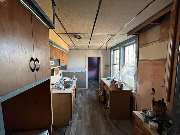 Cash only sale. With 2,408 square feet and over 4 acres of land, the possibilities are endless! Currently, this home is a 5 bedroom. 3 bedrooms on the main floor, along with a kitchen, full bath, dining area, and living room. Upstairs consists of 2 additional bedrooms and a loft area. The majority of the main floor has 11 1/2 foot ceilings. The exterior is equipped with a large covered front porch and oversized detached 2 car garage.