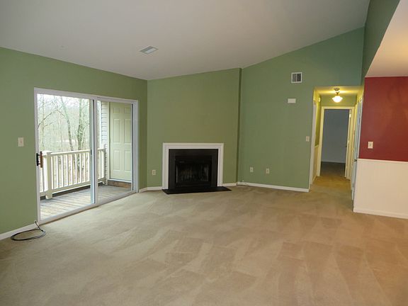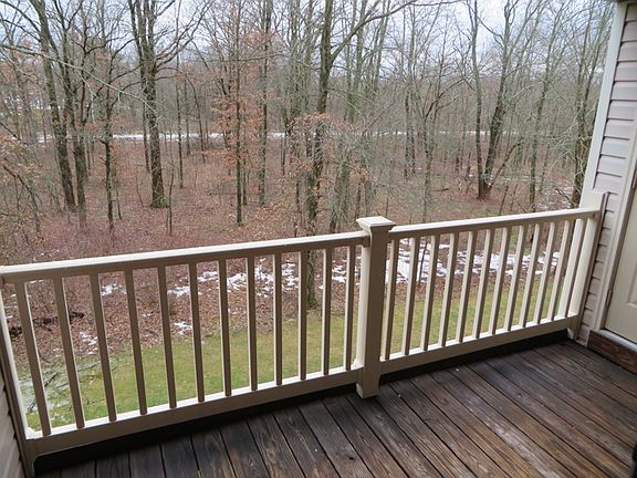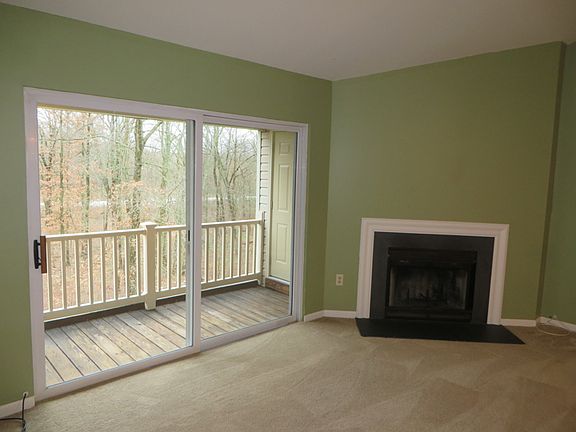 Freshly painted larger unit; Beautiful rear-view from vaulted living room (with fireplace) or view from private deck to open space forest; 2nd floor; Quick settlement possible; 2 Full Baths (master bath and hall bath); Den-Fam Rm can be office/library/office or guest room; Storage room on deck; Washer, Dryer, Refrigerator & Microwave included; New hot water heater; Lots of off street parking; Good association-Maintains Common Areas, Ext Building Maintenance, Lawn Maintenance, Snow Removal, Trash Removal.