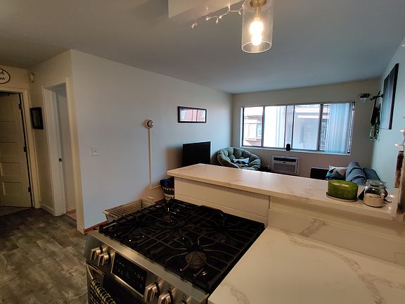 The unit's updates provide a modern feel within the charming and vintage building. It's beautiful new appliances, gas range stove, makes all your cooking needs desirable and easy! The convenient counter top is perfect for a breakfast nook, leaving ample space in the living room for other needs.