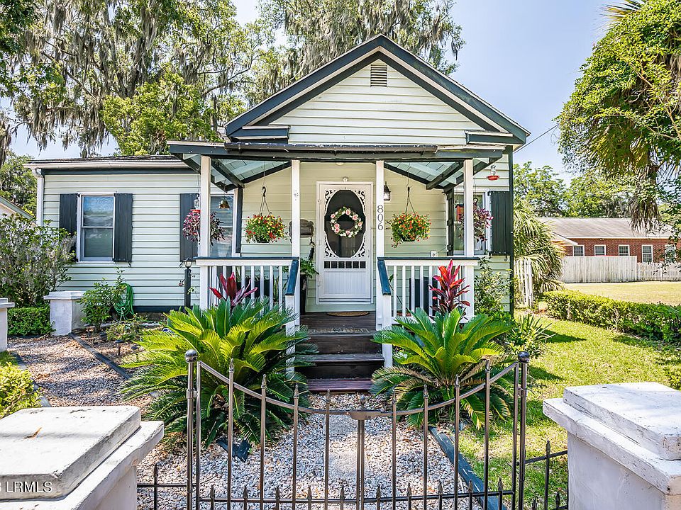 Welcome to Emerald Cottage, a picturesque retreat nestled in the heart of Beautiful Beaufort by the Sea. Located just steps away from the USCB Center for the Arts and a short walk to Bay Street's many attractions. This charming cottage offers a delightful escape from the hustle and bustle of everyday life. You are greeted by a whimsical path lined with flowers, leading you to the enchanting front porch. The outdoor spaces beckon you to sit on the porch or rear firepit and enjoy the lush Southern landscape punctuated by a massive live oak and Spanish moss nestled in the shade.