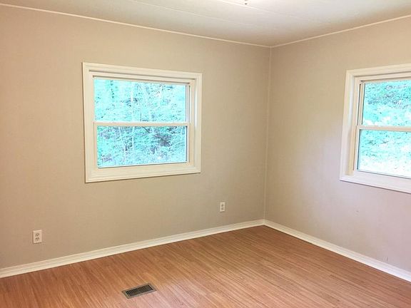 This 1500 SF 3 bedroom/2 bath doublewide sits on a beautiful 3/4 acre privately owned wooded lot with large trees in a country setting. It shares this lot with one additional singlewide. It has a nice yard with a small fenced side yard. This home but has many updates including vinyl window replacement, new painting throughout, vinyl plank laminate flooring throughout, both bathrooms have been completely renovated and kitchen has been updated also. Kitchen appliances include refrigerator w/ice and water in door, smooth-top stove, microwave and dishwasher. It has an open floor plan, separate dining area, den-like area with wood burning stove, spacious covered front deck and a back deck, and extra storage add-on. It has central heat and air. There are are lot of windows in this home making it light even though it is nestled in the trees. Kitchen is spacious with ample cabinets and has an eat-in bar. Dinging room has built in china cabinets with storage. There are washer and dryer hookups. This home is located approximately 3 1/2 miles from beautiful Fletcher Park which offers walking and biking trails, picnic areas, a stream, ball field and hosts family events throughout the year. The rent includes water, garbage and lawn maintenance. Security deposit is $1,000. A pet would be considered under certain circumstances. Sorry but outside smokers only. One year lease required. We don't expect perfect credit but want to make sure you can afford the rent. There is a $35 application fee per person over 18 years old that will be living in the home. We are responsible landlords who take care of issues quickly and are looking for responsible tenants who will take care of our home while they are living in it. If you would like to drive by to see the home, below are the instructions. Directions: Take Hwy 25/Hendersonville Road to Fletcher. Turn left onto Howard Gap Road. Take first left onto Jackson Rd. Go approx. 2 1/2 miles and turn right onto Hutch Mtn. Rd. Go approx. 1 mile. After the "S" curve look for mailbox on the left with 806 on it. Turn left into driveway. The home is directly in front of you. Owner pays for water, sewer and trash. Tenant pays for electric
