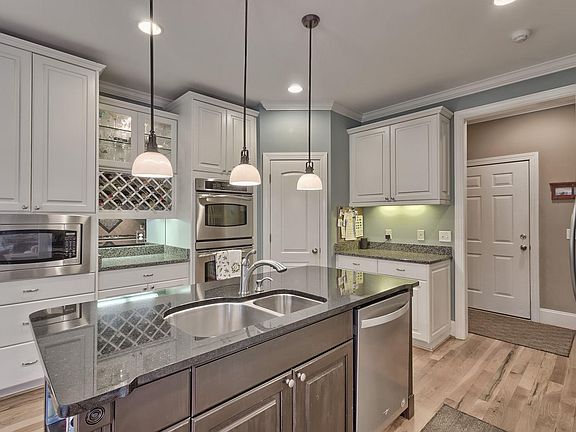 - RoomKitchenFeatures: Granite Counters, Kitchen Island, Pantry, Recessed Lighting, Floors-Hardwood, Bar, Backsplash-Tiled, Cabinets-Painted