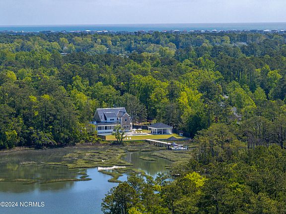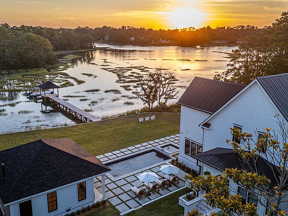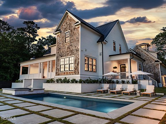 Welcome to coastal luxury living at its finest! This stunning coastal farmhouse-style retreat, meticulously crafted in 2021, invites you to immerse yourself in a world of unrivaled elegance and natural splendor. Nestled on a spacious cul-de-sac lot spanning over 3/4 acre, with picturesque creek frontage boasting unparalleled nature vistas, this residence promises a lifestyle of tranquility and sophistication. Step outside your backdoor and embark on a 15-minute boat ride to Wrightsville Beach, where evenings are adorned with refreshing drinks and delectable dinners against the backdrop of breathtaking sunsets. Return home to indulge in the ultimate relaxation within your private oasis, complete with a heated, saltwater pool enveloped by the serenity of the coastal landscape. This residence seamlessly blends the comforts of modern living with the allure of coastal charm, offering an idyllic retreat overlooking Pages Nature Park, and just moments away from the conveniences of Mayfaire Shopping Center. Revel in the best of both worlds, with the privacy and natural beauty of creek front living, complemented by the proximity to Wilmington's vibrant attractions. Every facet of this impeccable home exudes thoughtful design and impeccable craftsmanship, from the majestic white oak beams adorning the entry hall to the exquisite butler's pantry and wet bar reminiscent of a scene from The Home Edit. Be sure to explore the comprehensive feature and detail sheet in the MLS, showcasing the countless luxuries and amenities awaiting discerning buyers. Indulge in the coastal lifestyle you've always dreamed of - where every moment is infused with serenity, sophistication, and the timeless allure of waterfront living. Welcome home to a sanctuary where luxury knows no bounds and nature's beauty is your everyday backdrop.
