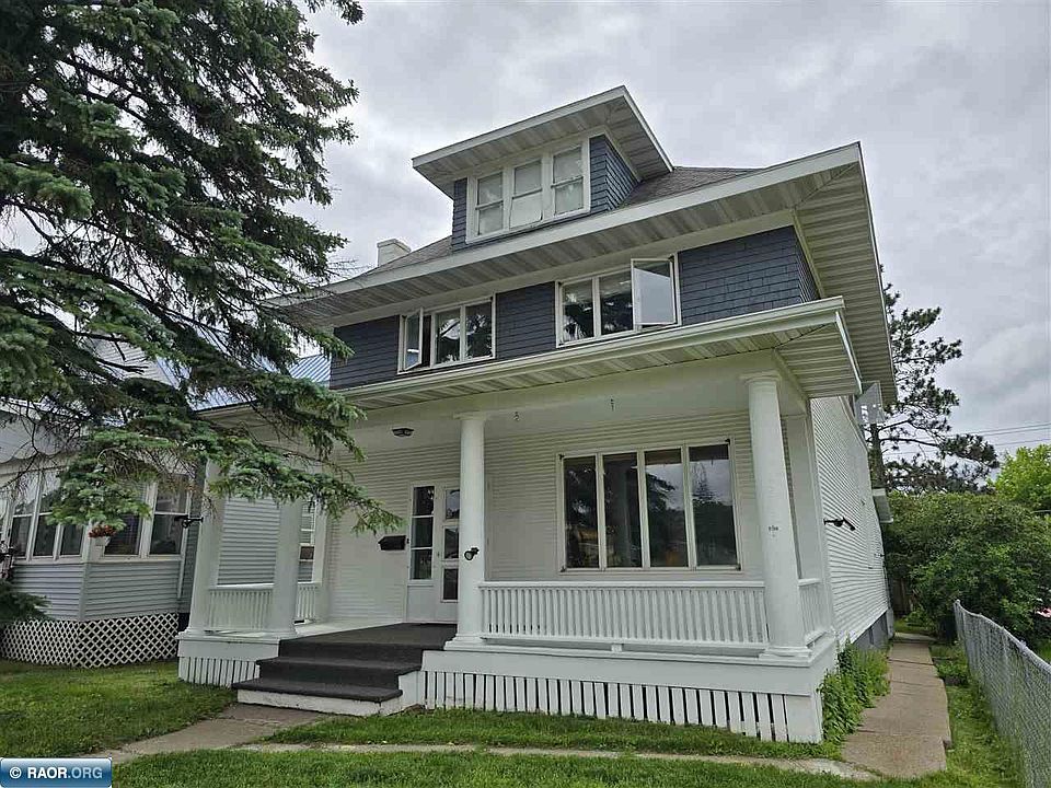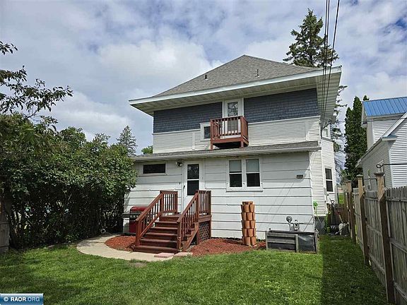 Charming and spacious home with tons of character and updates -- with a spectacular privacy fenced back yard! 4 bedrooms / 1.5 bathrooms / Natural gas heat / Updated kitchen with beautiful hickory cabinets / Updated bathrooms / Hardwood floors and updated vinyl / Large living room, formal dining room, office, kitchen with large pantry, and mudroom on the main floor / Lots of bedroom space / Tons of storage / 3rd story with even more space available. Excellent location near downtown Eveleth. A great home!