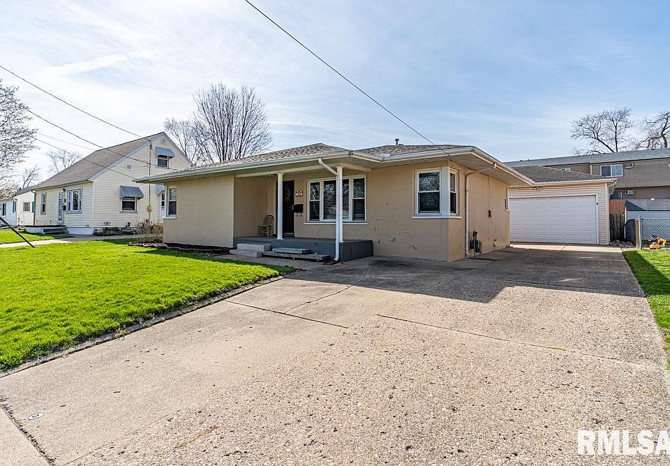 NORTH SIDE OF PEKIN! Come take a look at this 2 bedroom, 1 bath ranch style home with partially fenced yard. Move in ready and very clean. Flooring has been replaced in most of the home in 2021. Large detached 28x30 garage (built in 1998) with covered patio area. Basement is ready to finish and has a hidden built in record player. Roof updated in 2014 and some replacement windows. Furnace was serviced in 2020 and checked regularly by Cordts HVAC. Fully applianced kitchen and washer & dryer stay. Quick possession available. Come take your tour today!