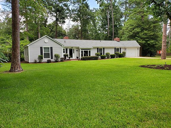 Gorgeous one level 3 bedroom, 1.5 bath home conveniently located in Aiken Estates. Home is situated on a large, private .73 acre lot. The classic interior of the home comes packed with plenty of character, boasting original hardwood floors throughout, exposed brick flooring in the den, two fireplaces, a large living room, bay window, sun room, and a single car garage. The back deck opens up to serene views of the wonderfully landscaped backyard with a crystal clear pool as its centerpiece. Pool has new liner. New roof in 2014. House has been well kept for its age and would serve its new owner well.