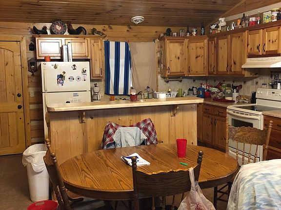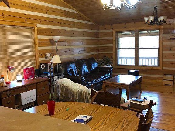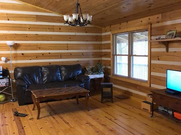PRICED $149,900 AT $75,000 BELOW TAX APPRAISAL . Mini horse farm with 10.16 acres. Well built log home open plan with kitchen/dining/living room and large master bedroom. 1 and 1/2 bath. Full unfinished basement interior and exterior entrances can be easily finished. Interior pine walls, ceiling and hardwood floors and tile. Covered wrap around porch and large patio. Property fenced. 28/30 detached garage/workshop. Small horse barn. Road needs some grading due to excessive rain.