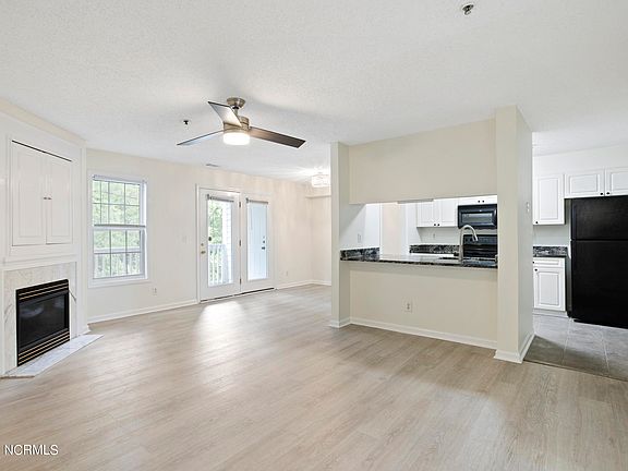 This 3 BR 2BA condo is centrally located between downtown and Wrightsville Beach and allows for quick access to College Road, UNCW, and a multitude of shopping and dining options. As you enter the large foyer this floor plan offers an open living space with kitchen and dining combo and a large family room with a fireplace. The spacious primary bedroom offers a large walk-in closet, and the bath features a walk-in shower and jetted spa tub. Two other spacious bedrooms on the opposite side of the unit share a full hall bath. There are also upgraded lighting and fan fixtures in the bedrooms and living room. The kitchen is ready for entertainment with granite counter tops, an electric glass top range, built in microwave, dishwasher, disposal, refrigerator and pass through bar which offers space for additional seating. The laundry closet is complete with washer and dryer. Be ready to relax and enjoy nature on your private rear deck which opens to a quiet wooded area and has a storage room for convenience. The home was freshly painted throughout. Cape Cottages is a well-maintained complex with many amenities including grounds maintenance, night watchman, pool, tennis, volleyball, cable and internet plus more. It also offers two assigned parking spaces and provides ample additional visitor spaces for guest and other occupants. $5000 Credit to buyer for closing cost or use as you choose!!