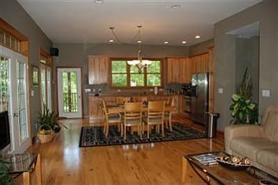One of the most desirable homes on the lake. This 2748 SF waterfront charmer has great appeal from the water. (The SF includes the lower lvl) The inside will impress you as well with it's custom design to maximize intimacy w/the water. Enjoy water views from the secluded owners suite as well as the kitch, lvrm, & Cov porch on the 1st floor. The covered porch wraps 3/4 of the home & offers a special outdoor living space of which is the owners favorite place to enjoy the beautiful lakengren seasons. All of the amenities are very high end. The kitch is enhanced w/42 inch hickory cabinets, stainless appliances, 10 foot ceilings & hwd floors. The floors extend into the lvrm & compliment the 23 ft ceilings, a fireplace & open staircase to the owners suite. The lower lvl has a 4th bdrm, an office area as well as a fmrm. It walks out to a large patio equipped w/a built in fire pit and offers lake views. The dock is private & has 3 pwl lifts. Ga w/a Room above and a 24 x 30 RV port.