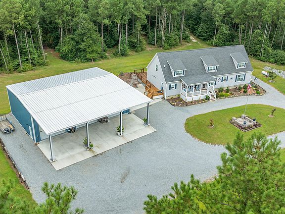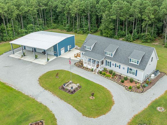 This rare find offers the perfect combination of privacy, luxury, and functionality, all set on 5 acres of unrestricted land with over 788 ft of road frontage, 3/10 mile walking trails located in the highly desirable Grantham school district. A gated entry greets you by 80 Knock Out rose bushes, crepe myrtles, apple trees, and pomegranate coming up the circle drive. 2021 build, this 3,400 sqft off-frame stick-built modular offers an open concept floor plan with abundant natural light from large windows & transoms. Boasting 4 spacious bedrooms, 3 (lower level), & 3 full baths. A showstopper kitchen with a large island, stainless steel appliances, walk-in pantry, and farm table eat in area. You'll find beautiful craftsmanship in the living quarters with exposed beams & crown molding throughout. Upstairs provides additional flex space perfect for an office, playroom, or entertainment area. Out front a rocking chair front porch overlooks beautiful flowers and greenery. Serene privacy is found out back on the wrap-around porch that leads to concrete patio with a stone outdoor fireplace. The home is equipped with a whole home Generac 2200 KW generator. A staple highlight for this property is the 40x60 steel beam shop that is fully finished-insulated, wired, and includes an additional heated/cooled 200sqft and full bathroom with walk-in shower-ideal for a guest suite, workshop office, or hobby room. The 4 bay doors are all covered providing additional parking and versatile useful space (14 ft, 12 ft, 8ft), as well as 200 amp service. This single-owner property has been meticulously developed & maintained and maintained to the highest degree making it a true legacy property. The combination of beautiful living spaces, top-notch outdoor features, and a dream workshop make it truly one-of-a-kind. Don't miss this unique opportunity to call this peaceful rural gem home. Located in the Grantham community convenient to Mt Olive, Goldsboro, and surrounding areas