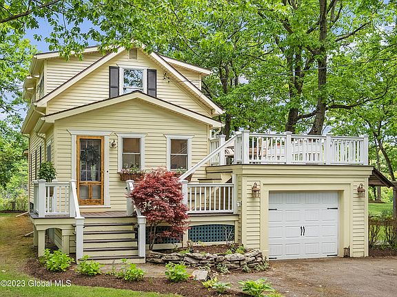 A slice of heaven awaits you! Fall in love with this riverside bungalow drenched in natural light designed with many unique windows, custom staircase, screened in porch with brazilian walnut floors facing the spectacular Mohawk River. Welcomed by a beautiful updated kitchen with island, free flowing to spacious dining area, full bath, and open and bright living room, where you can walk into an open floor plan with windows making you feel like you are nestled in nature. Bright loft space w/ built in desk + full bath, and sitting area accompanied by two spacious bedrooms, one with the most magnificent view of the river. Outside boasts a freshly stained deck perfect for entertaining, large yard with additional building lot or enjoy the privacy with woodland gardens recently created.