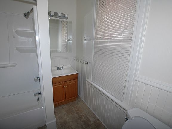 * Second story of two story up/down duplex with approximately 850 square feet of living space. Attic storage. * Kitchen (25.5' x 6') with wood cabinets & tile flooring. Refrigerator and range included. * Living room (14.5' x 11') with wood floor and closet. Exterior exit door. * Full bath (8' x 11') with shower over tub and vinyl flooring. * Bedroom 1 (18' x 11') with wood floor and closet. * Bedroom 2 (11.5' x 11') with wood floor and closet. * Vinyl, double-hung, tilt-in windows throughout. * Coin-op Washer & Dryer in basement accessed from outside. * Off-street parking space in rear and side of property included.