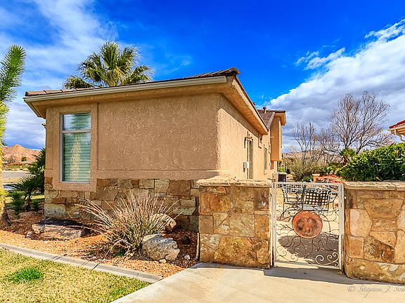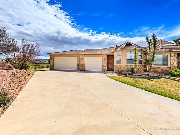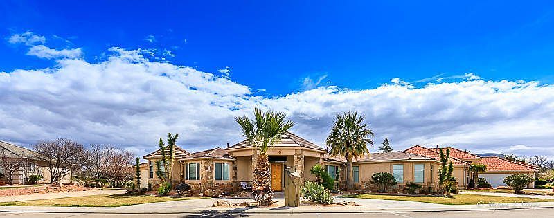 Relax on the large deck while taking in the views of the Golf course on both sides of home, Pine Valley Mountain and Zion. Enjoy the custom architecture and design, Faux marble columns, 3 fireplaces, Theatre room, interior rope lighting, Travertine floors and 2 master suites. Second kitchen, Casita w/ separate parking and separate entrance. Outdoor built in BBQ, fridge and fire pit with seating