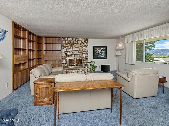Charming mid-century modern home just minutes from downtown has it all: The hospital, schools, shopping, and all things Prescott. Situated on a view lot at the end of the street. Single level, ranch style home with outstanding views. The galley kitchen is bright with tons of cabinets and counter space. The living room features a gorgeous stone, wood-burning fireplace & built-in bookshelves.