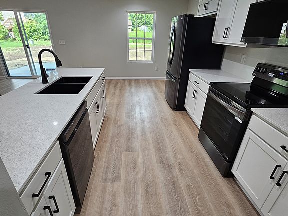 Brand new home just built and ready to move into. Features granite counter top, full set of black stainless steel kitchen appliances, large upgraded sink. Fridge is large upgraded refrigerator. Large attached 2 car garage. Also including a storage shed in the back yard. Lovely sliding glass door to the back yard with large patio space. Trash and mowing are included. Primary bedroom features spacious walk in closet and bathroom. It has a walk in shower. 2nd bathroom features a bathtub, very nice vanity with lots of counter top space. Located next to golf course/ club. Also right next to beautiful park with 1/4 paved walking path. Amazing location and easy access to highways. Trash and mowing included. Tenant pays water, electric, gas. Does have access to fiber internet. Company Kwikcom, has many different plans to choose from.