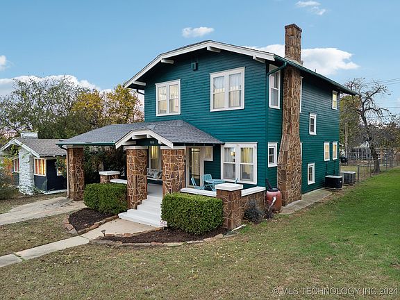 Discover the ultimate blend of historic charm and modern convenience in this stunning 1920s bungalow with porte-cochere, nestled in Sand Springs' vibrant historic district just 13 minutes from downtown Tulsa and walking distance to downtown Sand Springs. With an oversized three-car garage / shop with electricity (665 SQUARE FEET), a beautifully updated interior, and zoned HVAC for year-round comfort, this home offers both style and functionality in a prime location.