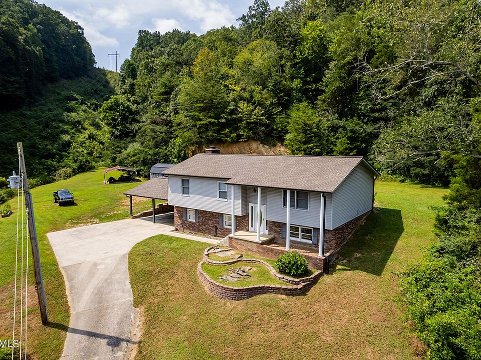 Rare opportunity to acquire a nice bi-level home on private setting on 11+ acres! Just minutes away from the well-known Windrock Park, that offers 72,000 acres of off-road trails! This nice traditionally styled home has a stately setting on a hillside with natural mountain & pastoral views from the front porch! Considerable level space surrounds the house so plenty of side and back yard! Includes an additional approx 10 acres on the hillside for privacy, hiking, 4-wheeling, or possible shooting range! Own your own piece of natural woodlands! Detached metal carport included. Large custom storage building is negotiable. Inside you'll find a totally updated interior with spacious rooms and tasteful neutral decor. 3 bedrooms upstairs, large living room, dining & kitchen. fabulous valley/mountain views from the living room windows! Lower level offers a huge rec room with massive brick fireplace, plus a 4th bedroom with views, and a 5th room for office space or hobby room, etc., and a half bath/laundry! Many updates and features throughout to see include freshly painted walls with popular ''knockdown'' finish, beautiful 3/4 inch gleaming hardwood floors, ornate oval glass entry door with sidelights, oak stair railings, 6-panel doors with new trim & hardware, quality replacement insulated windows (note the natural light from the double windows in dining area and living room!), tile floors in kitchen & bathrooms, stainless steel appliances, new brushed nickel lighting fixtures, granite top vanity and tile tub surround in guest bath, custom tile shower in primary bedroom bath, and more! Large 2-car attached carport area with nice brick wall surround, could easily be enclosed for a garage.