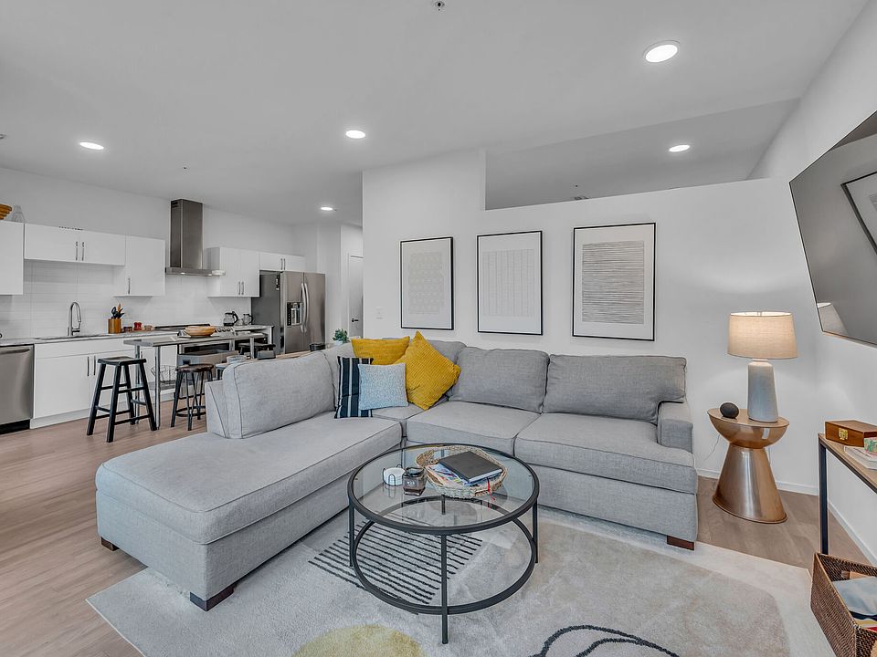 Move-in Ready! Condo is FURNISHED, vacant, and immediately available. (Furnishings are different than those pictured. Updated photos coming soon.) This second floor, contemporary condo is conveniently located in GulchView with an easy walk to the Gulch, Edghehill Village, and a quick commute to Wedgewood Houston, Geodis Park, Belmont & Vanderbilt Universities. This unit comes with large contemporary floor-to-ceiling windows, custom electronic shades, an assigned parking spot in the gated garage, and some amazing amenities (fitness center with peloton bikes, Hydrow, treadmill, etc; rooftop lounge with gas grill and skyline views). Custom shelving in the primary closet and pantry by California Closets. Open kitchen hosts Carrara quartz countertops and stainless steel appliances. Smart home features include a nest thermostat and Latch keyless entry. Washer and dryer included.