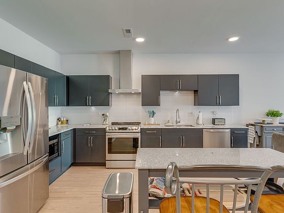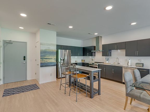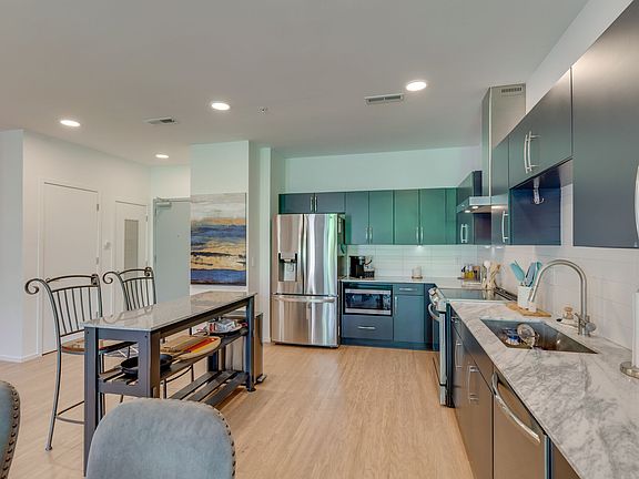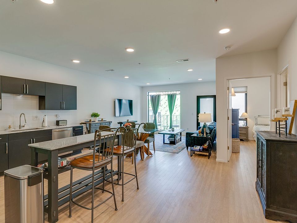 This spacious condo is a truly remarkable find, offering one of the largest units in the building at 969 square feet with a covered patio! It also features an additional room that would make for an excellent home office. The unit boasts an open floor plan with upgraded lighting, sleek finishes & oversized windows that flood the space w/ natural light. The kitchen is a chef's dream, w/ plenty of cabinet space & all stainless-steel appliances, including the stack washer & dryer. The Alina offers a luxurious lifestyle, complete w/ a Peloton Studio, a Resident's Lounge located on the 5th floor + a stunning Roof Deck w/ skyline views on the 6th floor. One assigned covered parking space. The Alina is convenient to popular attractions: The Gulch, Geodis Park, Bridgestone Arena & Nissan Stadium!