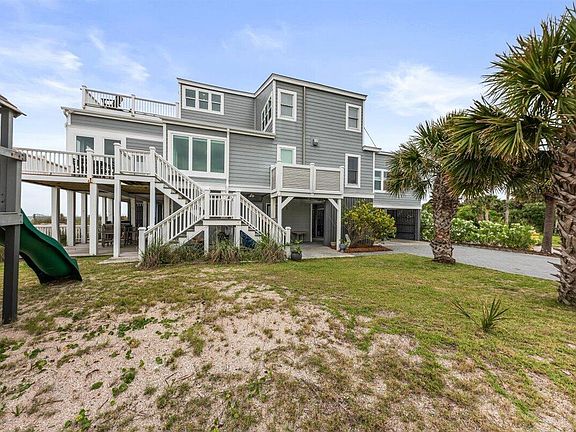Make this spacious, oceanfront home on Edisto Beach your own. The open floor plan includes grand windows in the kitchen, dining, living, and sunrooms overlooking the ocean and miles of sandy beach. Relish these waterfront views as you delight in the ample storage, natural stone countertops and backsplash, and walk in pantry of this cook's kitchen. This outstanding contemporary home features five or six bedrooms and 5.5 baths. Recent whole home remodel and addition incorporate hardwoods and ceramic tile on the second and third levels as well as coordinating luxury vinyl plank flooring on the ground level. Master Bedroom suite addition on the main level encompasses both a large bedroom and bathroom featuring a free standing tub and generous shower with multiple shower heads and a sizablewalk in closet offering gracious storage for both husband and wife. A small private deck of off the master bedroom provides a wonderful setting for enjoying morning coffee or evening sunsets. There are two additional bedrooms and two full baths on the main level. The third level offers both an additional oceanfront master suite and a roomy bunk room with a private bath to delight the younger generation. Ascend a short flight of stairs from the third level to discover one of the highest decks on the Edisto waterfront offering views from Seabrook to Hunting Island. Spectacular!!! Storage opportunities abound on the ground level which includes a craft room/office, massive walk in closet, cloak room, laundry room/half bath, hot & cold outside shower, ocean view dining, seating and cooking areas, and a 2 car garage. The home also has a three stop elevator and 2x6 frame construction. This enchanting home is fully furnished and ready for memory making with family and friends. It has not been on the rental market but would be great income producer.